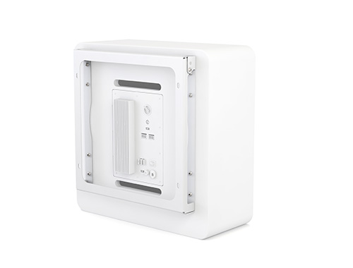 Материал изготовления сталь, габаритные размеры 351х347 мм, толщина в сборе (расстояние от стены до корпуса сабвуфера) = 40 мм, вес 1.22 кг. Одна из сторон кронштейна откидывается, благодаря чем к прибору можно подключать кабели без необходимости его демонтажа.