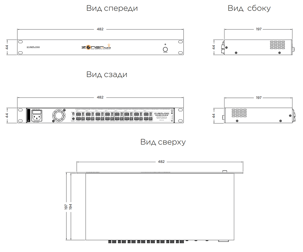 Модуль PWS-8 изготовлен в стандартизированном корпусе высотой 1U и оборудован специальными кронштейнами для крепления в 19-дюймовые (рэковые) серверные стойки. Габаритные размеры 480x205x44 мм (1U), вес 2.4 кг. Питание от сети 220В. Прибор эксплуатируется в крупных, многозонных аудиосистемах на основе аудиопроцессоров серии ZONER pro, развернутых на объектах различного назначения, где требуется централизованное питание устройств в системе и простота их коммутации между собой.