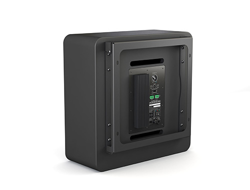 Компактный корпус выполнен из МДФ, тип “закрытый ящик”. Динамик размещается на лицевой части корпуса и при установке развернут к слушателям. Благодаря конструкции, сабвуфер выдает чистейший звук, без малейших призвуков или артефактов, вызываемых хаотичным движением воздуха и механическими колебаниями различных резонаторов в других типах корпуса. Собственная резонансная частота встроенного динамика 28 Гц. Есть возможность инверсии фазы. Для подключение к СОУЭ или аналогичным системам предусмотрены контакты EXT.MUTE, которые блокируют трансляцию при поступлении управляющего сигнала. Габаритные размеры 442х442х180 мм, вес 16,8 кг.